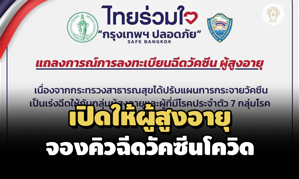'ไทยร่วมใจ' เปิดให้ผู้มีอายุ 60 ปีขึ้นไป ลงทะเบียนฉีดวัคซีนวันนี้ ตั้งแต่เวลา 12.00น. พร้อมแจงเลื่อนนัด '18-59 ปี' ไม่ได้รับจัดสรรตามเป้า จึงไม่สามารถฉีดวัคซีนได้ตามแผนเดิม