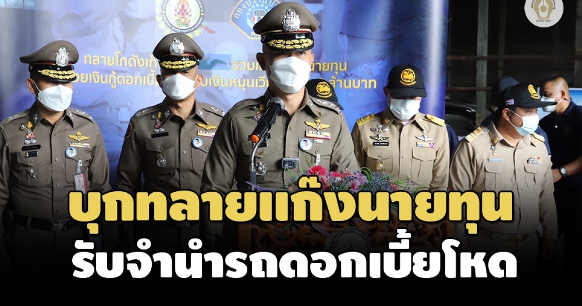ตำรวจสอบสวนกลางบุกทลายโกดังเก็บรถรับจํานํา รวบเครือข่ายนายทุนปล่อยเงินกู้ดอกเบี้ยโหด พบเงินหมุนเวียนเกือบ 50 ล้าน