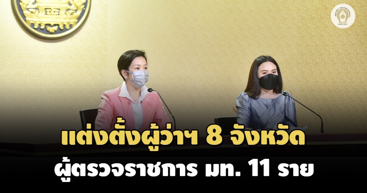 ครม.เคาะแต่งตั้งผู้ว่าฯ 8 จังหวัด 11 ผู้ตรวจราชการ ‘ศักดิ์ฤทธิ์ สลักคำ’ รองอธิบดีกรมการปกครอง ย้ายนั่งผู้ว่าฯพะเยา ‘เชษฐา โมสิกรัตน์’ รองอธิบดี ปภ. นั่งผู้ว่าฯแม่ฮ่องสอน