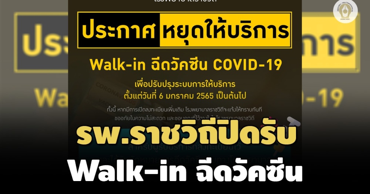 ผู้สื่อข่าวรายงานว่า เมื่อวันที่ 5 ม.ค. 2565 โรงพยาบาลราชวิถีประกาศหยุดให้บริการ Walk-in ฉีดวัคซีนโควิด-19 เพื่อปรับปรุงระบบการให้บริการ ตั้งแต่วันที่ 6 ม.ค. 2565 เป็นต้นไป