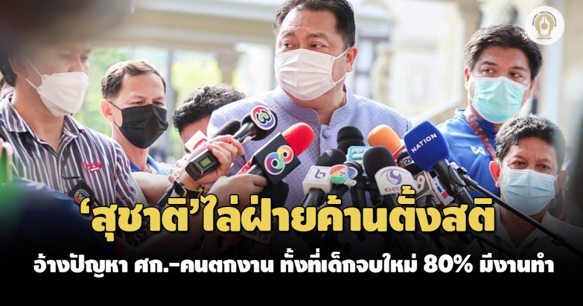 ‘สุชาติ’ ไล่ฝ่ายค้านตั้งสติ หลังอ่านญัตติอภิปรายทั่วไป อ้างปัญหาเศรษฐกิจ-คนตกงานจำนวนมาก ทั้งที่ นศ.จบใหม่ 70-80% มีงานทำทุกปี และอยู่ในระบบประกันสังคม