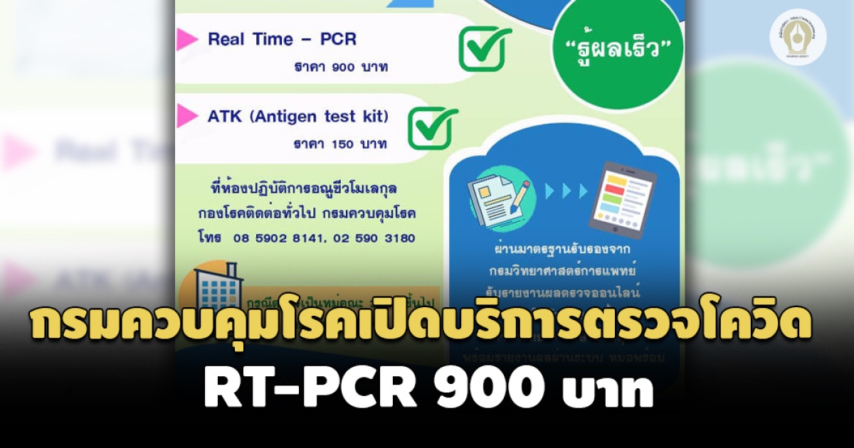 กรมควบคุมโรค เปิดบริการตรวจโควิด RT-PCR 900 บาท ATK 150 บาท รู้ผลเร็ว พร้อมออกใบรับรองทั้งภาษาไทย-อังกฤษ