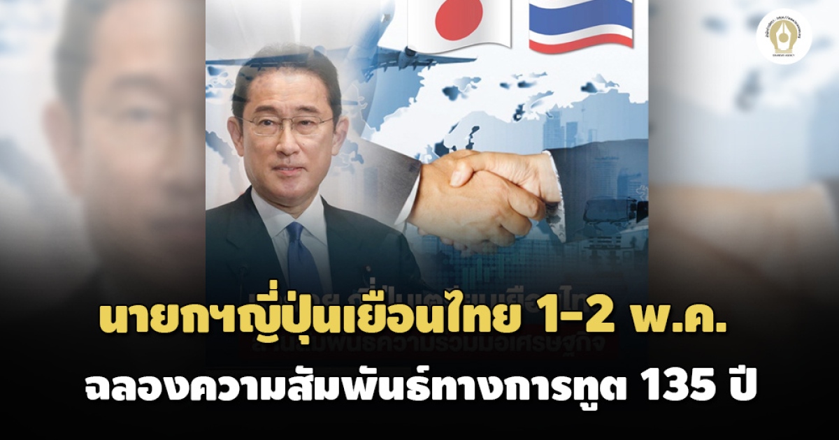 1-2 พ.ค.นี้ นายคิชิดะ ฟูมิโอะ นายกฯญี่ปุ่น เยือนไทยอย่างเป็นทางการ ครั้งแรกในรอบ 9 ปี พร้อมฉลองความสัมพันธ์ทางการทูตไทย-ญี่ปุ่น 135 ปี