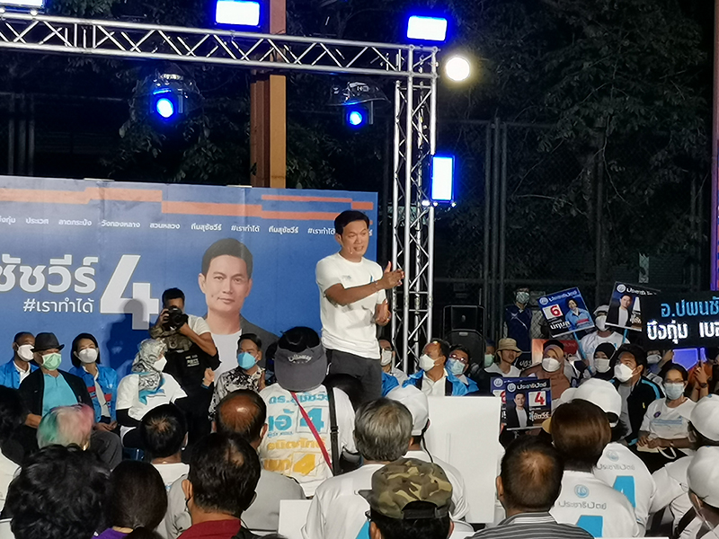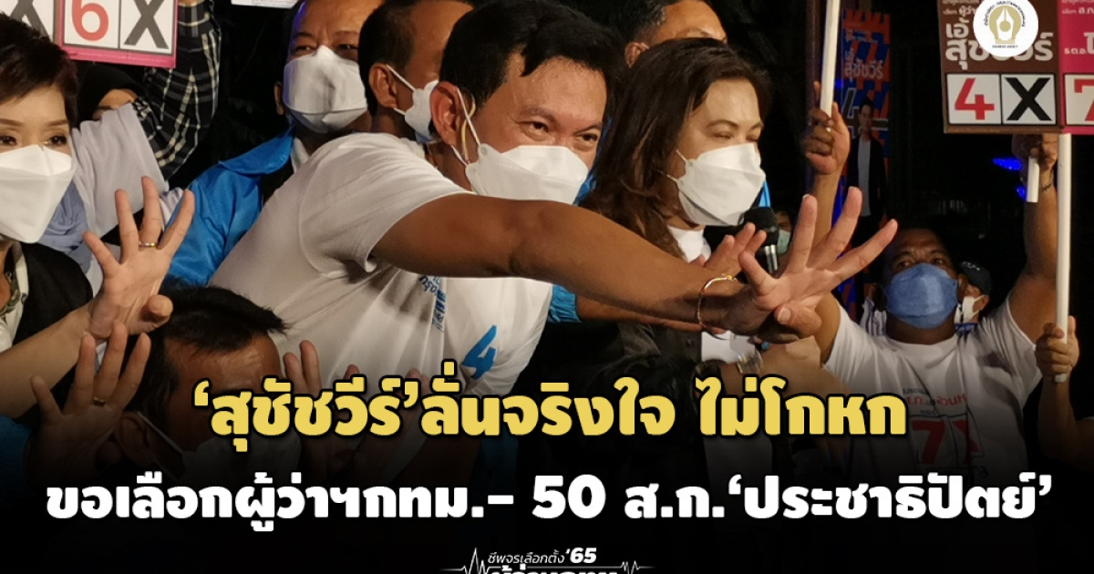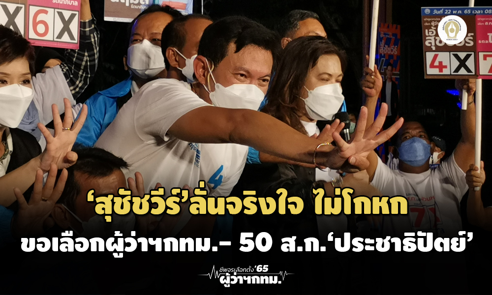 ‘สุชัชวีร์’ปราศรัยหมู่บ้านนักกีฬา ลั่นจริงใจ ไม่โกหก ขอเลือกทั้งผู้ว่าฯกทม.-ส.ก. 50 เขต ‘ประชาธิปัตย์’