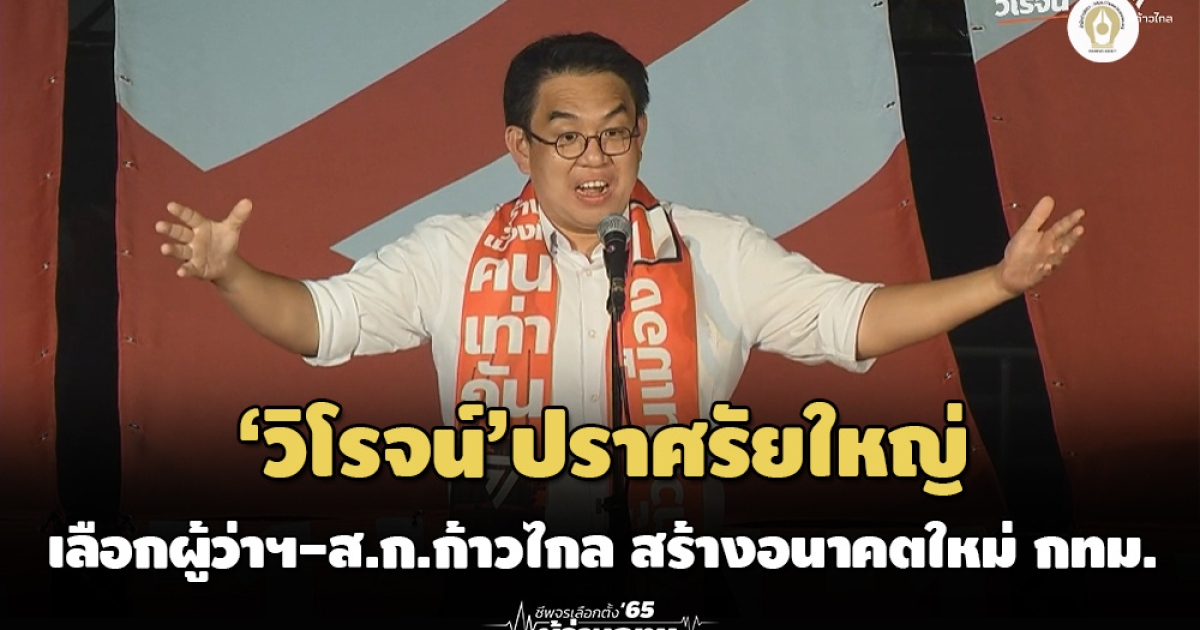 'วิโรจน์'ปราศรัยใหญ่ ย้ำใช้ยาแรง รื้อกฎหมายที่ไม่เป็นธรรม เพิ่มสวัสดิการสร้างเมืองให้คนเท่ากัน 'ธนาธร' ชู 3 เหตุผลต้องเลือกผู้ว่าฯ กทม.- ส.ก.ก้าวไกล 'ไอเติม' เชื่อ 22 พ.ค.สร้างอนาคตใหม่ให้คน กทม.