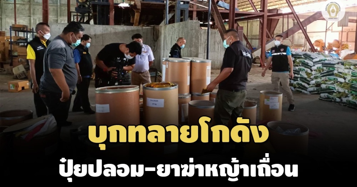 ปคบ.ร่วมกับกรมวิชาการเกษตร บุกทลายโกดังผลิตปุ๋ยปลอม-ยาฆ่าหญ้าเถื่อนที่ จ.นครราชสีมา ยึดเคมีอันตรายจำพวก 'ไกลโฟเซต พาราควอต' มูลค่ากว่า 10 ล้านบาท