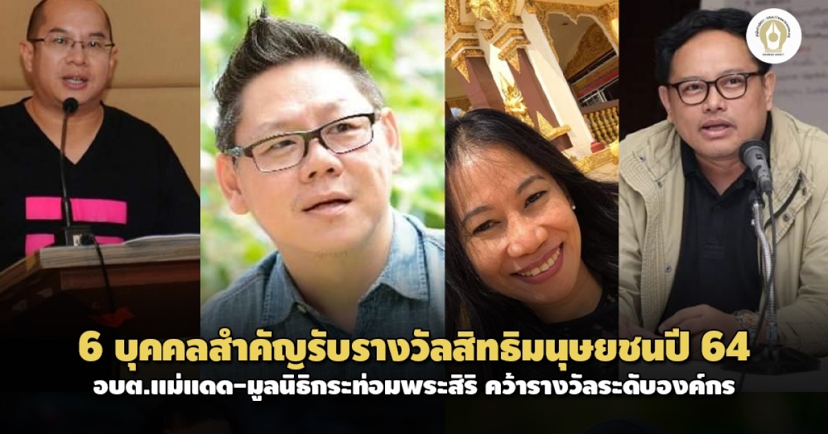 กสม.มอบรางวัลบุคคลที่มีผลงานดีเด่นด้านสิทธิมนุษยชน 6 ราย พบมีทั้งสื่อมวลชน, นักสังคมสงเคราะห์, สิทธิทางเพศ, ประมงพื้นบ้าน และอาจารย์มหาวิทยาลัย ส่วนระดับองค์กรมอบอีก 2 รางวัล