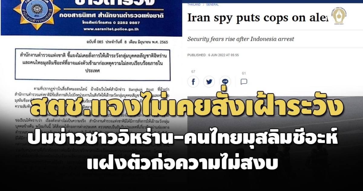 ผู้สื่อข่าวรายงานว่าสำนักงานตำรวจแห่งชาติ (สตช.) ได้ออกบทความประชาสัมพันธ์ระบุเนื้อหาว่า กรณีสื่อสังคมออนไลน์ อ้างอิงเว็บไซต์สำนักข่าว Bangkok Post ระบุว่า สำนักงานตำรวจแห่งชาติมีข้อสั่งการลับไปยังหน่วยงานในสังกัดให้เฝ้าระวังกลุ่มบุคคลสัญชาติอิหร่านและคนไทยมุสลิมชีอะห์ที่อาจแฝงตัวเข้ามาก่อเหตุความไม่สงบเรียบร้อยภายในประเทศ ซึ่งข่าวดังกล่าวส่งผลไปถึงความสัมพันธ์ระหว่างประเทศไทยและสาธารณรัฐอิสลามอิหร่าน