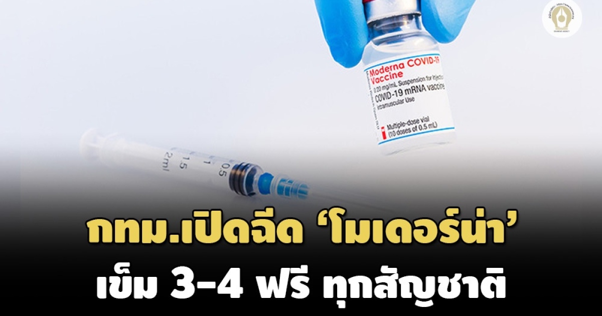 กทม.เปิดให้ฉีดวัคซีนโควิด 'โมเดอร์นา' เข็มกระตุ้น เข็ม 3-4 ฟรี สำหรับประชาชนอายุ 18 ปีขึ้นไป ทุกสัญชาติ โดยจำกัดวันละ 150 คน