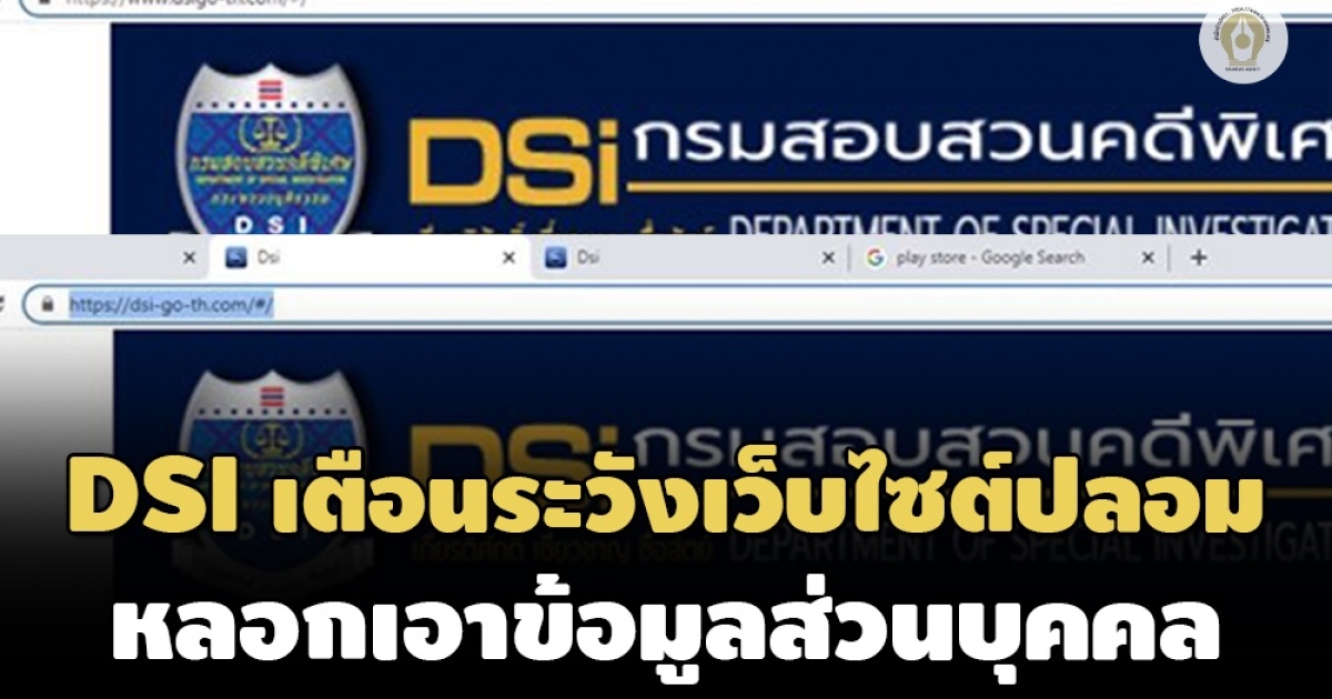 กรมสอบสวนคดีพิเศษ เตือนประชาชนระวังเว็บไซต์เลียนแบบดีเอสไอ หลอกเอาข้อมูลส่วนบุคคล