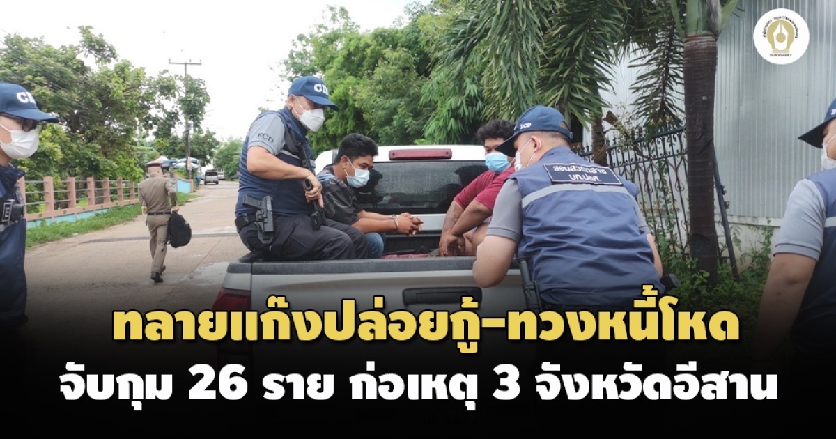 ตำรวจทลายแก๊งปล่อยกู้-ทวงหนี้โหดภาคอีสาน จับกุมได้ 26 ราย ของกลาง 1,796 ชิ้น พบทำผิดในพื้นที่ จ.มหาสารคาม-กาฬสินธุ์-ร้อยเอ็ด พบผู้ร่วมกระทำความีประวัติอาชญากรรม-ยาเสพติด เปิดปล่อยกู้คิดดอก 0.83% ต่อเดือน