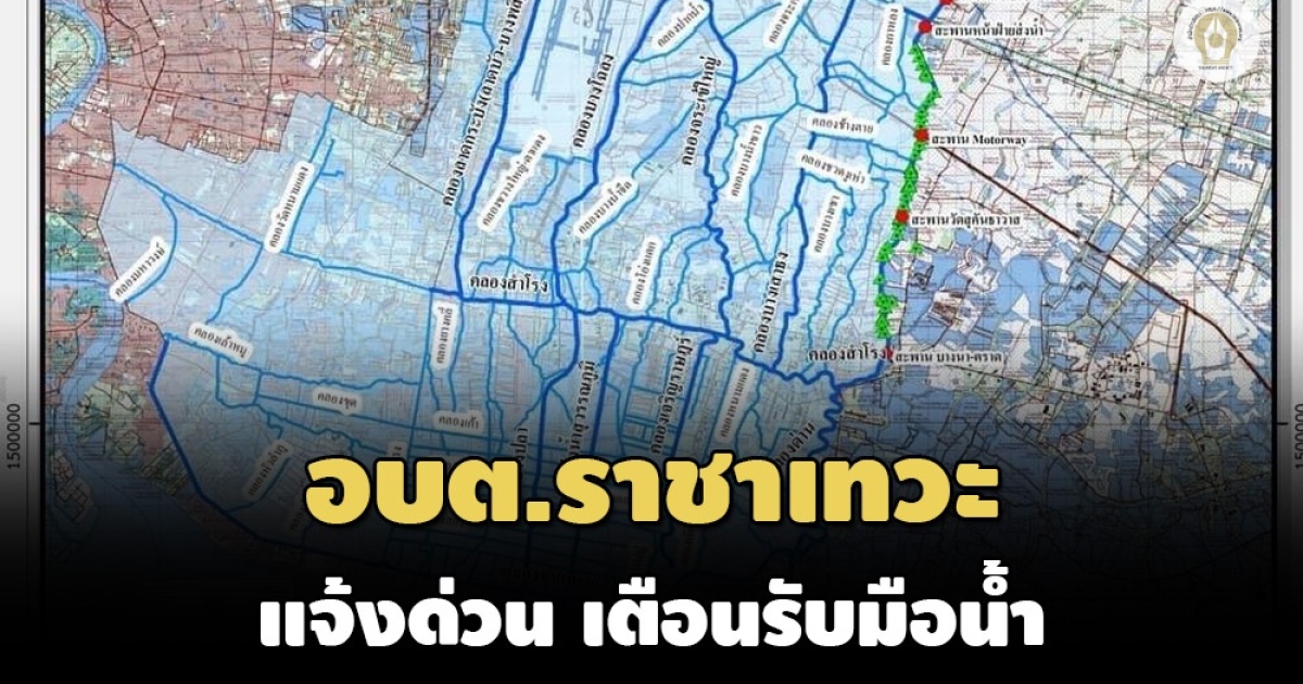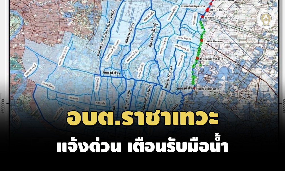 อบต.ราชาเทวะ ประกาศด่วน แจ้งเตือน ปชช.เตรียมย้ายสิ่งของขึ้นที่สูง หลังแนวโน้มระดับน้ำในคลองสำโรงเพิ่มขึ้น