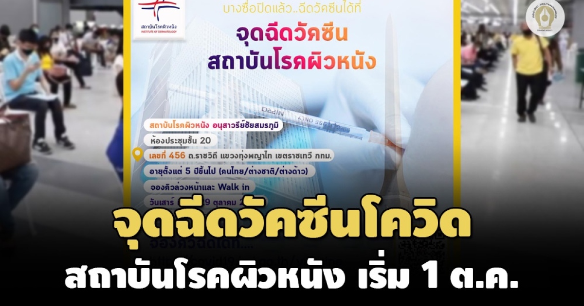เปิดศูนย์ฉีดวัคซีนโควิด สถาบันโรคผิวหนัง อนุเสาวรีย์ชัยสมรภูมิ ทั้งจองล่วงหน้า-วอล์ก อิน เริ่ม 1 ต.ค.นี้ หลังปิดศูนย์กลางบางซื่อ