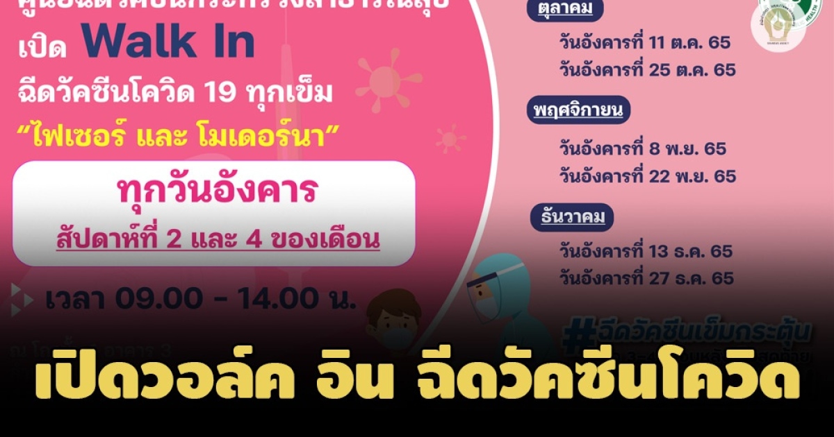 ศูนย์ฉีดวัคซีน สธ.เปิดฉีดวัคซีนโควิด โมเดอร์นา-ไฟเซอร์ ทุกวันอังคารสัปดาห์ที่ 2 และ 4 ของเดือน