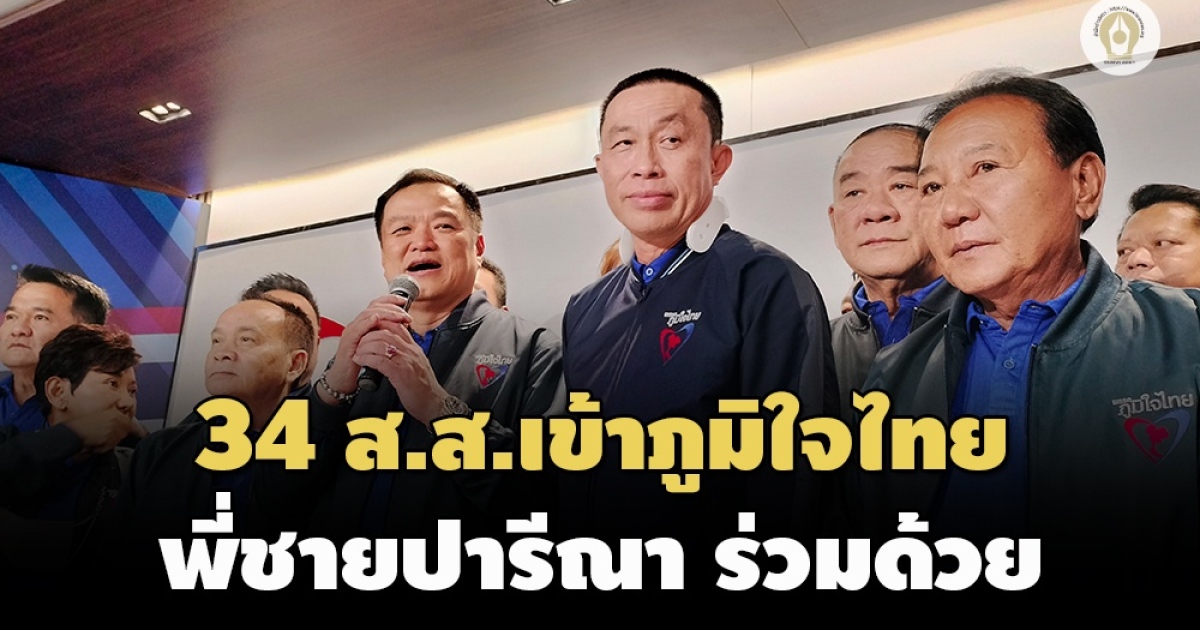 เปิดชื่อ 34 ส.ส.จากหลากพรรคเข้าสังกัด ‘ภูมิใจไทย’ เป็นที่เรียบร้อย พบ ‘พลังประชารัฐ’ ถูกดูดมากสุด 12 ราย ด้าน ‘ปารีณา’ นำพี่ชายสมัครเป็นสมาชิกพรรค ย้ำรัก ‘บิ๊กป้อม’ เหมือนเดิม ด้าน ‘กรณิศ-ภาดาท์’ ส่อเข้าพรรคตาม