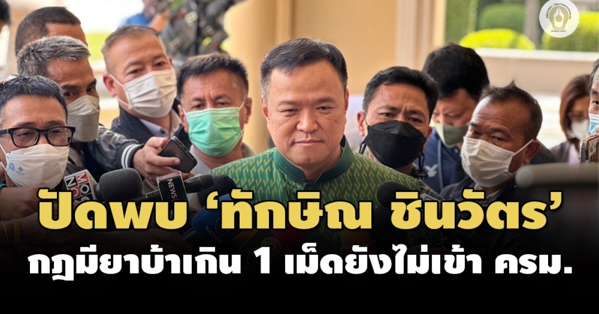 ‘อนุทิน’ เผยไม่ได้เจอ ‘ทักษิณ’ ที่กรุงลอนดอน ไม่ตอบ ‘บิ๊กป้อม’ ก้าวข้ามความขัดแย้งจับมือเป็นรัฐบาล ส่วนกฎกระทรวงมียาบ้าเกิน 1 เม็ดเป็นผู้ค้า ยังไม่เข้าครม. ยันไม่ห่วงยัดยา ห่วงเยาวชนม่ากกว่า