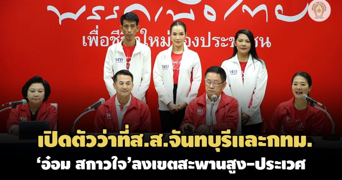 พรรคเพื่อไทยแถลงข่าวเปิดตัวผู้สมัครส.ส.จังหวัดจันทบุรีและกทม. ดารา 'อ๋อม สกาวใจ' ลงสมัครเขตสะพานสูง-ประเวศ