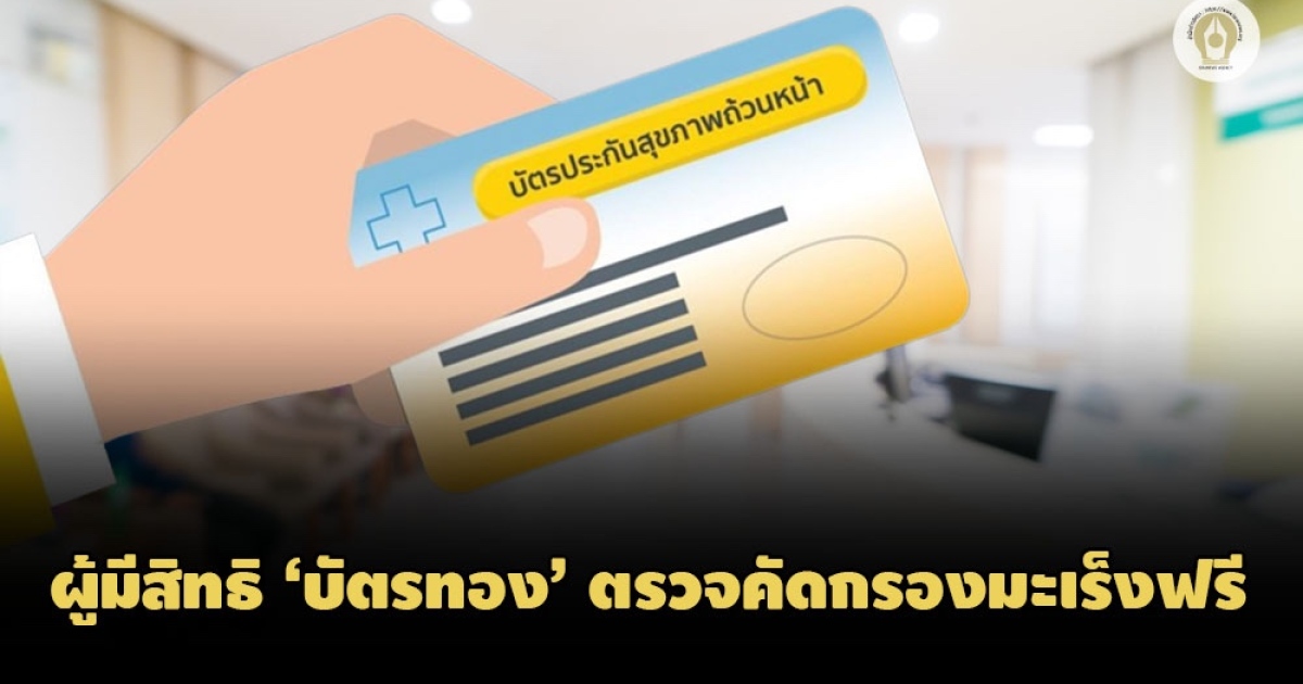 รัฐบาลเชิญชวนคนไทยผู้มีสิทธิบัตรทอง เข้าถึงสิทธิประโยชน์ตรวจคัดกรองความเสี่ยง มะเร็งปากมดลูก-ลำไส้-ช่องปาก-เต้านม เพิ่มโอกาสในการรักษามะเร็งให้หายขาด โดยไม่เสียค่าใช้จ่าย