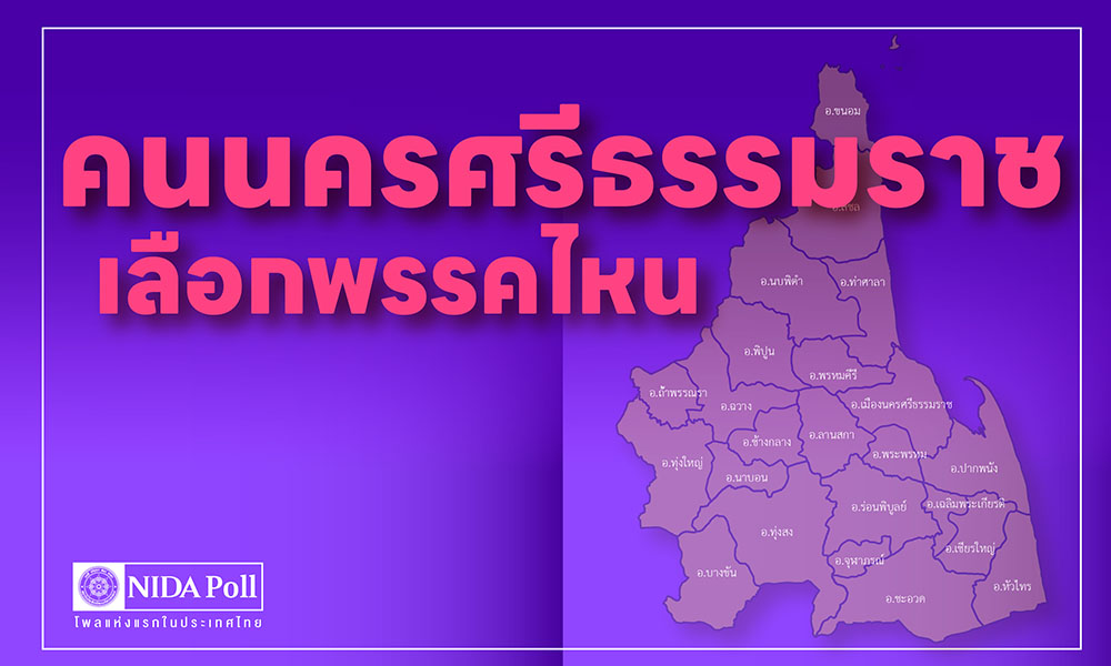 นิด้าโพล เผยคนนครศรีธรรมราช พร้อมเลือก 'ประยุทธ์' เป็นนายกมากที่สุด ร้อยละ 29.08 รองลงมา 'อุ๊งอิ๊ง' ร้อยละ 21.07 ส่วน ส.ส.แบบแบ่งเขต ให้ประชาธิปัตย์ ส.ส.แบบบัญชีรายชื่อ ให้เพื่อไทย
