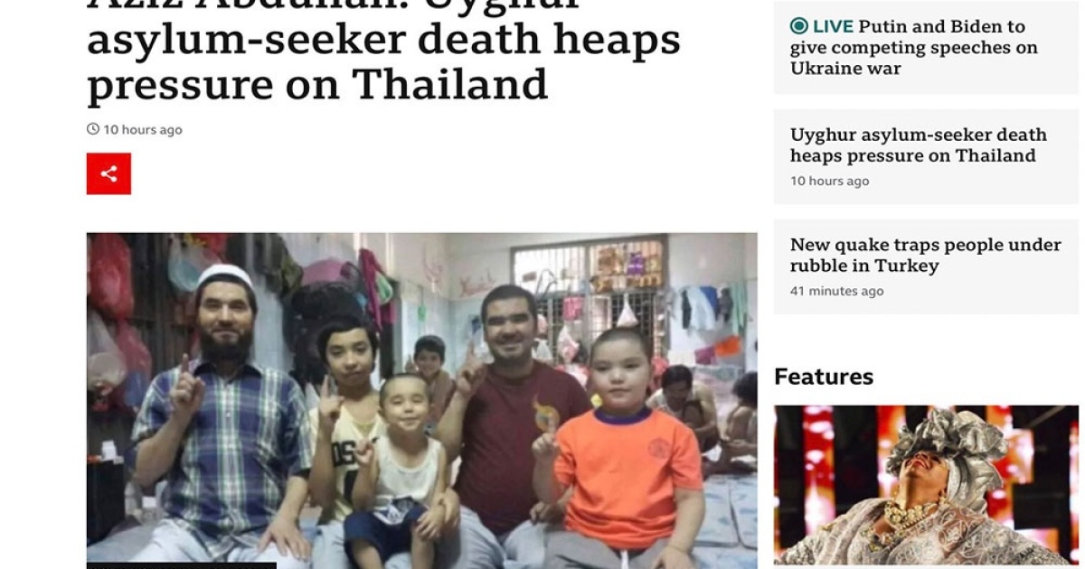 สำนักข่าวอิศรา (www.isranews.org) รายงานว่า เมื่อวันที่ 21 ก.พ. 2566 สื่อต่างประเทศรายงานการเสียชีวิตของ นายอาซิซ อับดุลลาห์ (Aziz Abdullah) ผู้ขอลี้ภัยชาวอุยกูร์ ที่ถูกควบคุมตัวเป็นเวลากว่า 9 ปี เสียชีวิตในศูนย์กักกันคนต่างชาติ (สถานกักกันคนต่างด้าว สำนักงานตรวจคนเข้าเมือง Immigration Detention Centre : IDC) ที่กรุงเทพฯ ผู้สื่อข่าวนำบางส่วนของข่าวมาเรียบเรียงดังนี้
