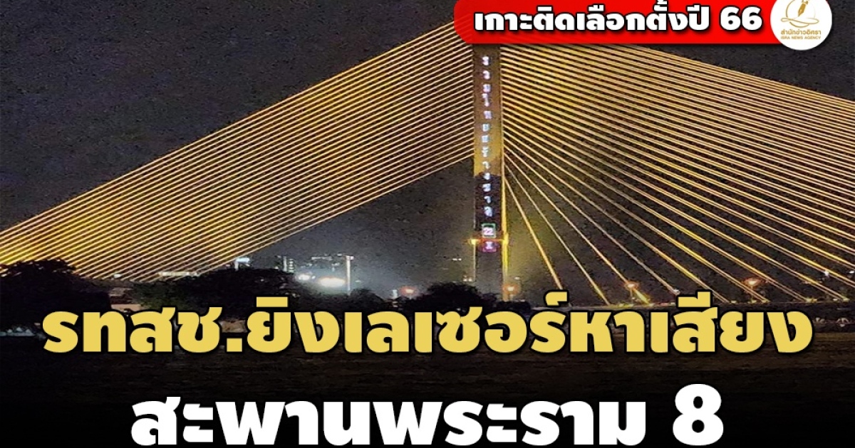 กทม.-กกต.โร่แจง กรณี ‘รวมไทยสร้างชาติ’ ยิงเลเซอร์หาเสียงบนสะพานพระราม 8 ‘ชัชชาติ’ชี้ ‘ทิพานันท์’ ทำหนังสือขอใช้ที่หาเสียงบริเวณสวนริมสะพานพระราม 8 จริง แต่คาดไม่ถึงยิงเลเซอร์บนสะพานจ่อสรุปบทเรียนต่อไป ด้าน กกต. ส่งต่อปลัดกทม.สอบเรื่องขออนุญาต ด้านพรรคโยน ‘ทิพานันท์’ ทำคนเดียว
