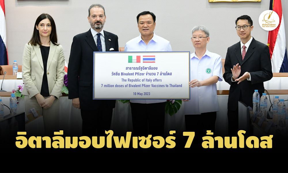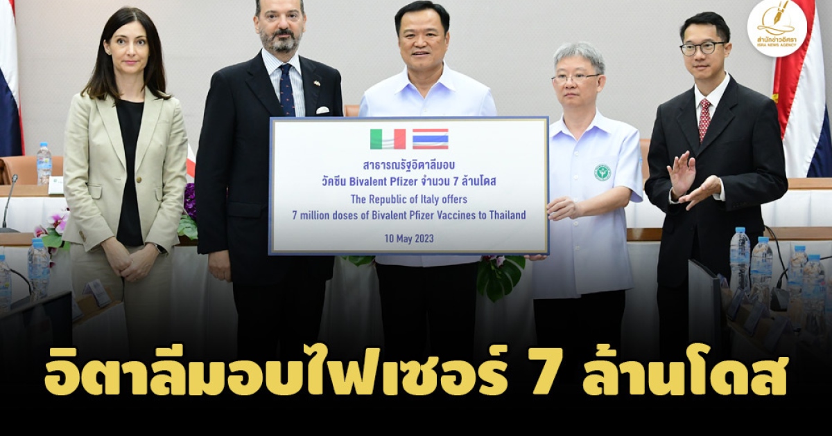 อิตาลีมอบวัคซีนไฟเซอร์รุ่น 2 ไบวาเลนท์ 7 ล้านโดสให้ไทยสำรองไว้ให้กลุ่มเสี่ยงฉีดวัคซีนโควิดประจำปี พร้อมวัคซีนไข้หวัดใหญ่