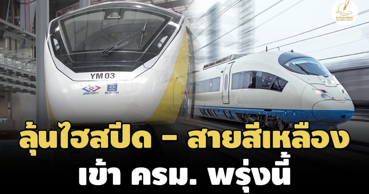 2 รถไฟ ‘ไฮสปีดเทรน 3 สนามบิน - รถไฟฟ้าสายสีเหลือง’ จ่อเข้า ครม. พรุ่งนี้ (27 มิ.ย. 66) รถไฟความเร็วสูงประเด็นแก้สัญญาเรื่องเหตุสุดวิสัย - ผ่อนจ่ายแอร์พอร์ตลิ้งค์ ส่วนสายสีเหลืองประเด็นอัตราค่าโดยสา
