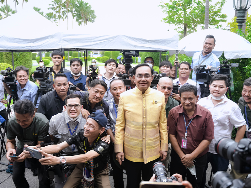 ผู้สื่อข่าวรายงานว่า ภายหลังการแถลงข่าวสื่อมวลชนได้ขอถ่ายภาพเป็นที่ระลึกร่วมกับ พล.อ.ประยุทธ์ ซึ่งบรรยากาศเป็นไปอย่างชื่นมื่น พล.อ.ประยุทธ์ได้เดินถ่ายภาพหลายจุด หลายมุม รวมทั้งร่วมถ่ายเซลฟี่กับผู้สื่อข่าวด้วย พร้อมส่งสัญลักษณ์มือมินิฮาร์ต ไอเลิฟยู และโบกมือให้กับผู้สื่อข่าวก่อนจะเดินขึ้นตึกไทยคู่ฟ้าด้วยสีหน้ายิ้มแย้ม
