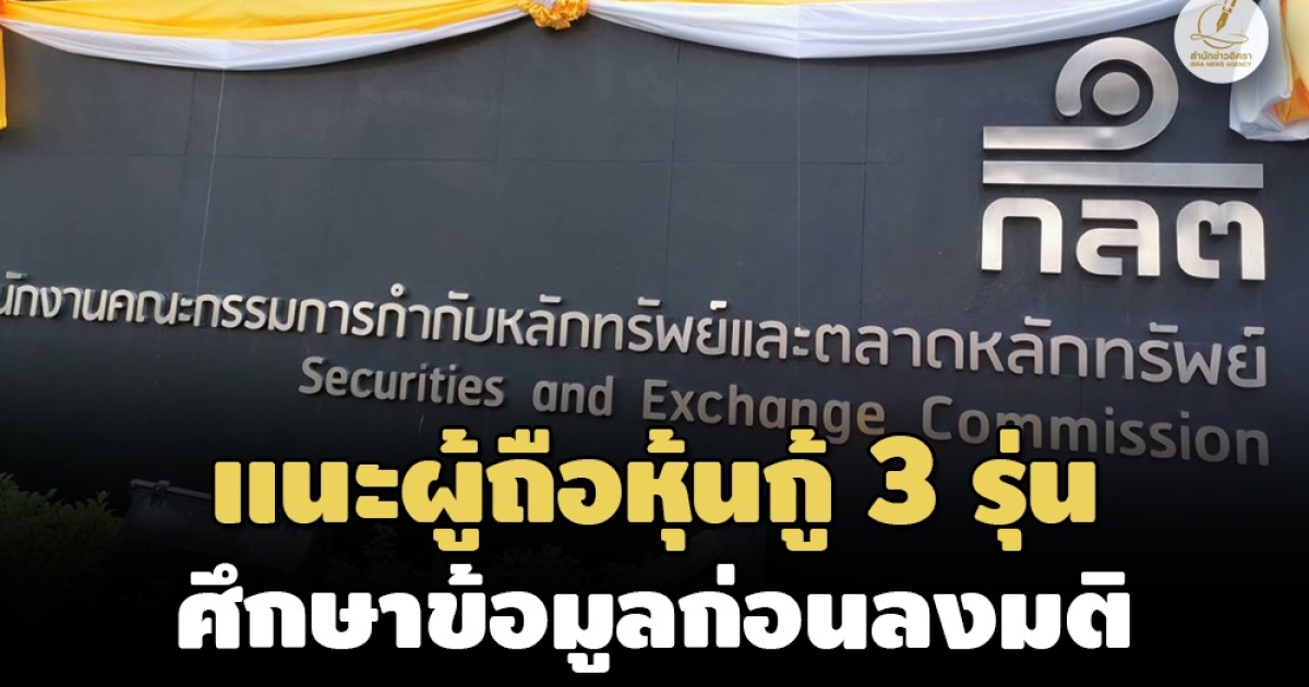 ก.ล.ต.แนะผู้ถือหุ้นกู้ ‘บ.เดซติเนชั่นฯ-บ.ริสแลนด์ฯ’ รวม 3 รุ่น ศึกษาข้อมูล-ซักถามผู้ออกหุ้นกู้ ให้ได้ข้อมูลให้ครบถ้วนก่อนตัดสินใจลงมติ