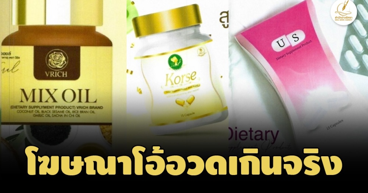 อย.ตรวจพบ 3 ผลิตภัณฑ์เสริมอาหาร ถูกยกเลิกเลขอนุญาตแล้ว แต่ยังพบโฆษณาโอ้อวดเกินจริง
