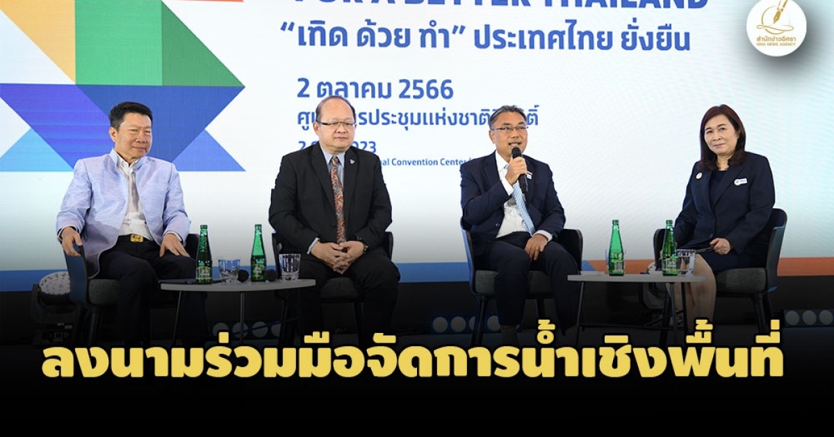 สำนักข่าวอิศรา (www.isranews.org) รายงานว่า เมื่อวันที่ 2 ต.ค. 2566 เวลา 11 นาฬิกา นายสุเมธ ตันติเวชกุล ประธานกรรมการมูลนิธิอุทกพัฒน์ ในพระบรมราชูปถัมภ์ และประธานกรรมการกิตติมศักดิ์ สถาบันสารสนเทศทรัพยากรน้ำ เป็นประธานเปิดงานและร่วมเป็นสักขีพยาน ในพิธีลงนามความร่วมมือ “การบริหารจัดการน้ำเชิงพื้นที่” บนเวทีเสวนา “Action Together for a Better Thailand” ในงาน มหกรรมความยั่งยืนที่ใหญ่ที่สุดในอาเซียน Sustainability Expo 2023 หรือ SX 2023 ณ ศูนย์ประชุมแห่งชาติสิริกิติ์ กรุงเทพฯ โดยมี ดร.รอยล จิตรดอน กรรมการและเลขาธิการมูลนิธิอุทกพัฒน์ ในพระบรมราชูปถัมภ์ หรือ อพ. ดร.รอยบุญ รัศมีเทศ ผู้อำนวยการสถาบันสารสนเทศทรัพยากรน้ำ หรือ สสน. และนายเกรียงไกร เธียรนุกุล ประธานสภาอุตสาหกรรมแห่งประเทศไทย หรือ ส.อ.ท.ร่วมลงนาม