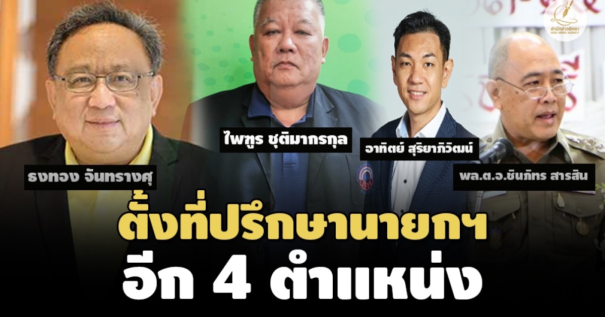 ‘เศรษฐา’ เซ็นตั้งที่ปรึกษานายกฯอีก 4 คน ‘ธงทอง-ไพฑูร-อาทิตย์ สุริยาภิวัฒน์-พล.ต.อ.ชินภัทร สารสิน’ มีผล 3 ต.ค. 2566