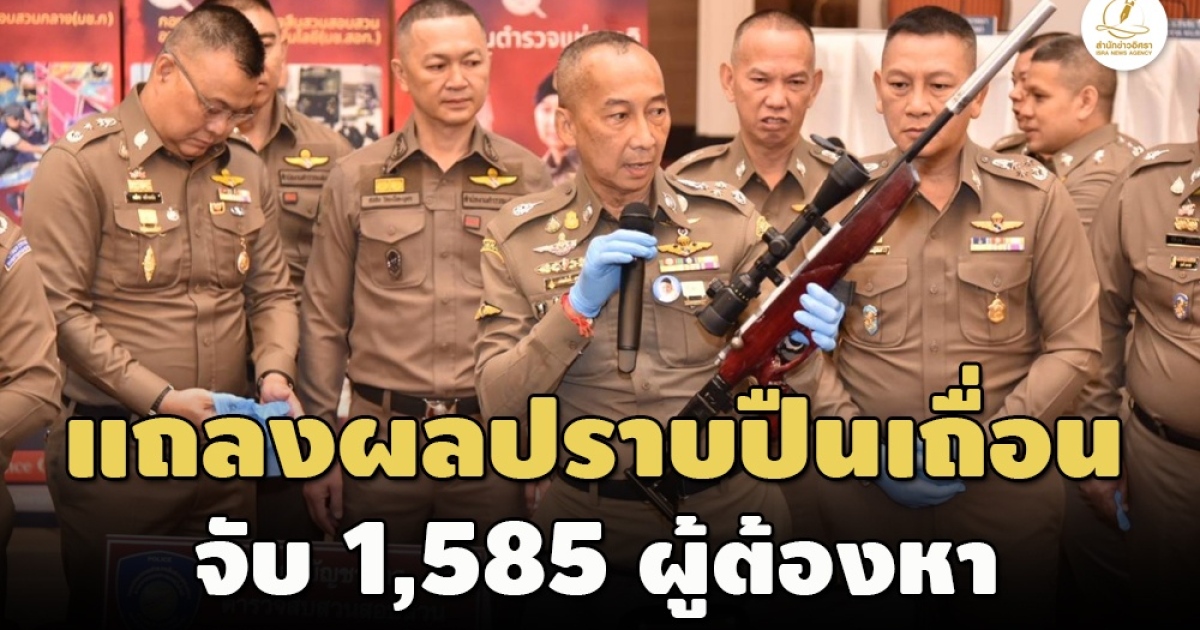 ผบ.ตร.แถลงกวาดล้างอาวุธปืนทั่วประเทศ หลังเหตุกราดยิงพารากอน ลงพื้นที่เป้าหมาย 3,224 จุด จับกุมผู้กระทำผิด 1,593 คดี ผู้ต้องหา 1,585 คน ยึดปืนเถื่อน 219 กระบอก ยึดกระสุน 7.5 หมื่นนัด-สั่งทุกหน่วยเฝ้าระวังสื่อออนไลน์ ย้ำต้องใช้ทุกทางสกัดอาชญากรรม