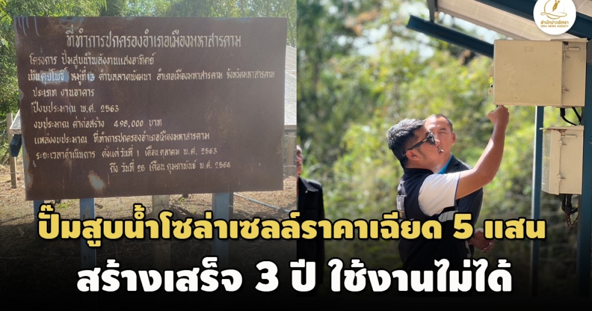 ป.ป.ช.มหาสารคามรับลูกเพจหมาเฝ้าบ้าน ลงพื้นที่ ต.ลาดพัฒนาสอบโครงการปั๊มสูบน้ำโซล่าเซลล์ 4.98 แสน สร้างเสร็จ 3 ปี ไม่เคยใช้เพราะซ้ำซ้อนระบบประปาหมู่บ้าน ผู้ใหญ่บ้านแจงเครื่องสูบน้ำเคยใช้งานได้ก่อนน้ำท่วม-ไม่มีคนซ่อมแซม