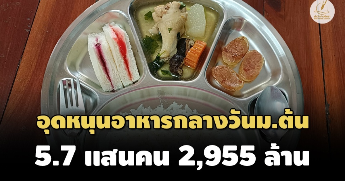 ครม.อุดหนุนงบอาหารกลางวัน นักเรียนม.ต้น 575,983 คน วงเงินรวม 2,955 ล้านบาท ครอบคลุม รร.สังกัด สพฐ., กรมปกครองท้องถิ่น, ตชด. และ กทม.