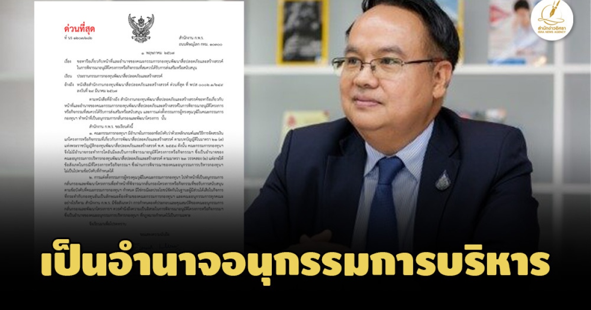 กองทุนสื่อฯ ได้ข้อยุติประเด็นอำนาจการพิจารณาทุน ก.พ.ร. ชี้เป็นอำนาจอนุกรรมการบริหารโดยเฉพาะ