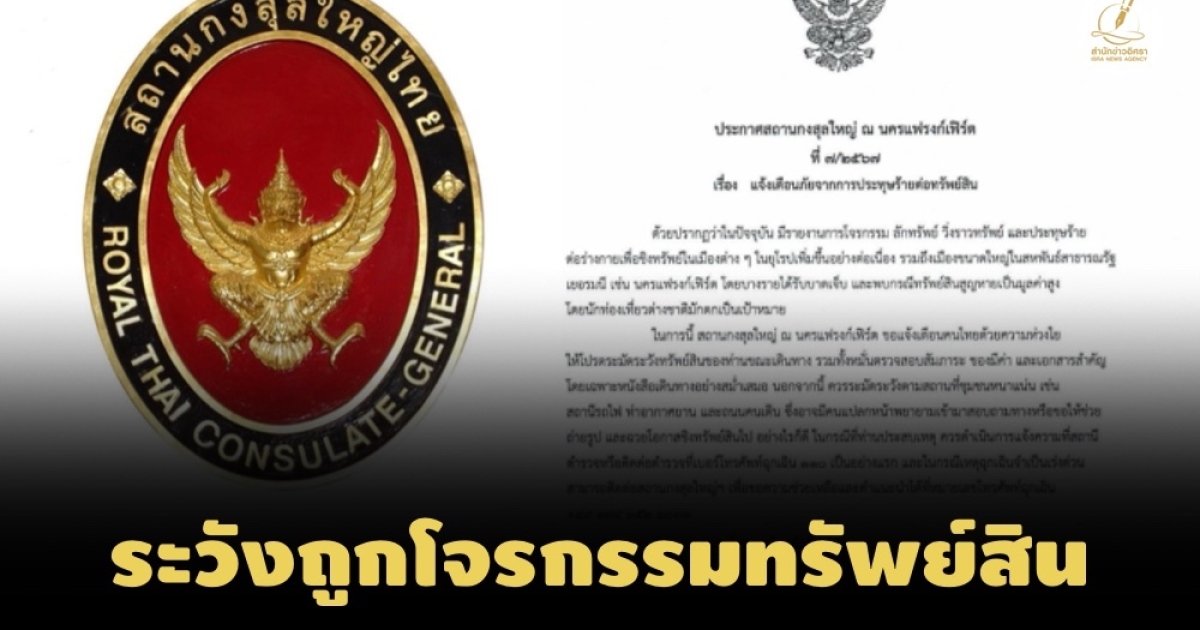 'ณัฐพงศ์ ลัทธพิพัฒน์' กงสุลใหญ่ ณ นครแฟรงก์เฟิร์ต ประเทศเยอรมนีแพร่ประกาศเตือนภัยคนไทยให้ระวังการประทุษร้ายต่อทรัพย์สิน