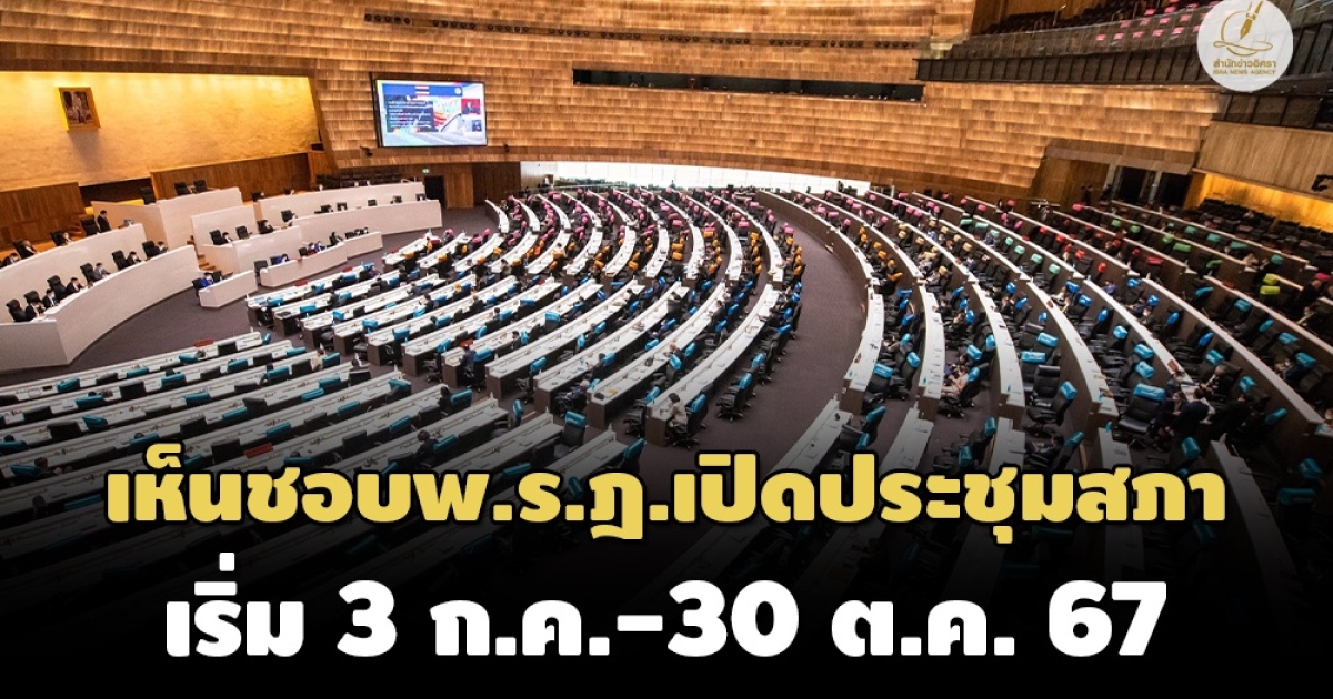 ครม.เห็นชอบร่าง พ.ร.ฎ.เรียกประชุมรัฐสภาสมัยประชุมสามัญประจำปีครั้งที่ 1 เริ่ม 3 ก.ค. - 30 ต.ค. 67