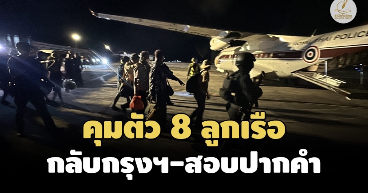 ‘บิ๊กเต่า’ คุมตัว 8 ลูกเรือน้ำมันเถื่อน ขึ้นเครื่องบินกลับเมืองกรุง นำตัวสอบปากคำ ก่อนส่งฝากขัง จัดชุดปฏิบัติการพิเศษ ‘หนุมานกองปราบ-มัจฉานุตำรวจน้ำ’ คุมเข้มตลอดทาง