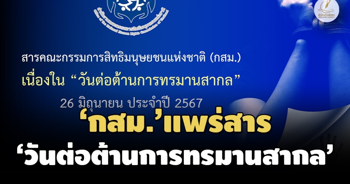 ‘กสม.’ ’แพร่สารเนื่องใน ‘วันต่อต้านการทรมานสากล เผยแม้ว่าจะมีการออก 'พ.ร.บ.ป้องกันการซ้อม-ทรมานฯ' แล้ว แต่ยังมี ‘ประชาชน’ ร้องเรียนถูก ‘กระทำทรมาน’ โดยเจ้าหน้าที่ฯ พร้อมแนะรัฐเร่งออก‘ระเบียบฯ’ช่วยเหลือ-เยียวยา ‘ผู้เสียหาย’