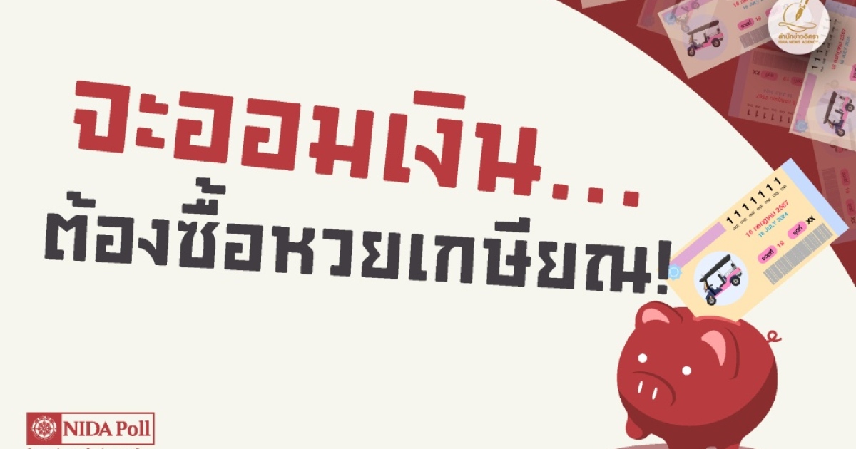สำนักข่าวอิศรา (www.isranews.org) รายงานว่า เมื่อวันที่ 7 ก.ค. 2567 ศูนย์สำรวจความคิดเห็น 'นิด้าโพล' สถาบันบัณฑิตพัฒนบริหารศาสตร์ (นิด้า)เปิดเผยผลการสำรวจของประชาชน เรื่อง “จะออมเงิน…ต้องซื้อหวยเกษียณ!” ทำการสำรวจระหว่างวันที่ 1-3 กรกฎาคม 2567 จากประชาชนที่มีอายุ 18 ปีขึ้นไป กระจายทุกภูมิภาค ระดับการศึกษา อาชีพ และรายได้ ทั่วประเทศ รวมทั้งสิ้น จำนวน 1,310 หน่วยตัวอย่าง เกี่ยวกับหวยเกษียณ การสำรวจอาศัยการสุ่มตัวอย่างโดยใช้ความน่าจะเป็นจากบัญชีรายชื่อฐานข้อมูลตัวอย่างหลัก (Master Sample) ของ “นิด้าโพล” สุ่มตัวอย่างแบบหลายขั้นตอน (Multi-stage Sampling) เก็บข้อมูล ด้วยวิธีการสัมภาษณ์ทางโทรศัพท์ โดยกำหนดค่าความเชื่อมั่น ร้อยละ 97.0