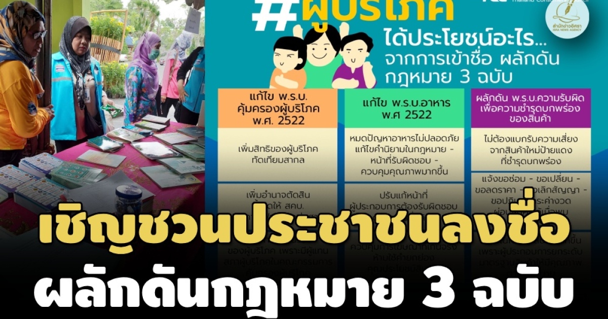 สำนักงานเลขาธิการสภาผู้แทนราษฎร ไฟเขียวให้สภาผู้บริโภค เชิญชวนผู้มีสิทธิ์เลือกตั้ง เข้าชื่อเสนอร่างกฎหมาย Lemon Law-แก้ไขพ.ร.บ.อาหาร-คุ้มครองผู้บริโภค