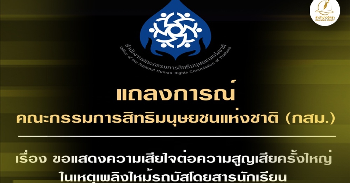 กสม.ออกแถลงการณ์ แสดงความเสียใจเหตุรถบัสนักเรียนไฟลุกไหม้ ระบุ สิทธิ-ความปลอดภัยในชีวิตและร่างกาย เป็นสิทธิมนุษยชนขั้นพื้นฐานที่สำคัญยิ่ง เร่งรัฐบาล เยียวยาความเสียหาย-ฟื้นฟูจิตใจ ติง หละหลวมปกป้องและคุ้มครองเด็ก สื่อโซเชียล เผยแพร่-ส่งออกภาพข่าว ซ้ำเติมญาติผู้เสียหาย