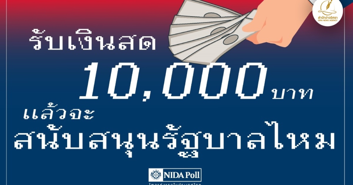 นิด้าโพลเผยประชาชนได้รับเงิน 10,000 บาท 34.35% ยังไม่แน่ใจว่าจะตัดสินใจอย่างไรในการสนับสนุนรัฐบาล-30.31% มีส่วนทำให้สนับสนุนรัฐบาล
