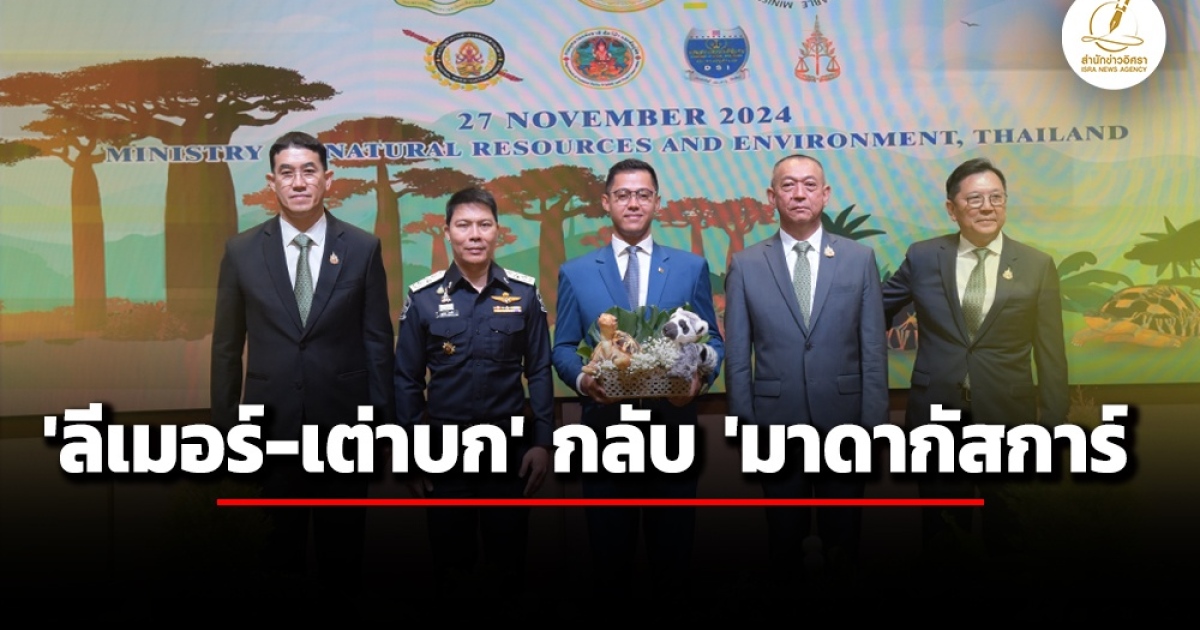 ‘พันตำรวจตรี ยุทธนา แพรดำ’ อธิบดีดีเอสไอ ร่วมกับ ‘เฉลิมชัย ศรีอ่อน’ รมว.กระทรวงทรัพยากรธรรมชาติและสิ่งแวดล้อม ส่งมอบ ‘ลีเมอร์และเต่าบก’ 4 ชนิด กว่า 900 ชีวิต คืน ‘มาดากัสการ์’