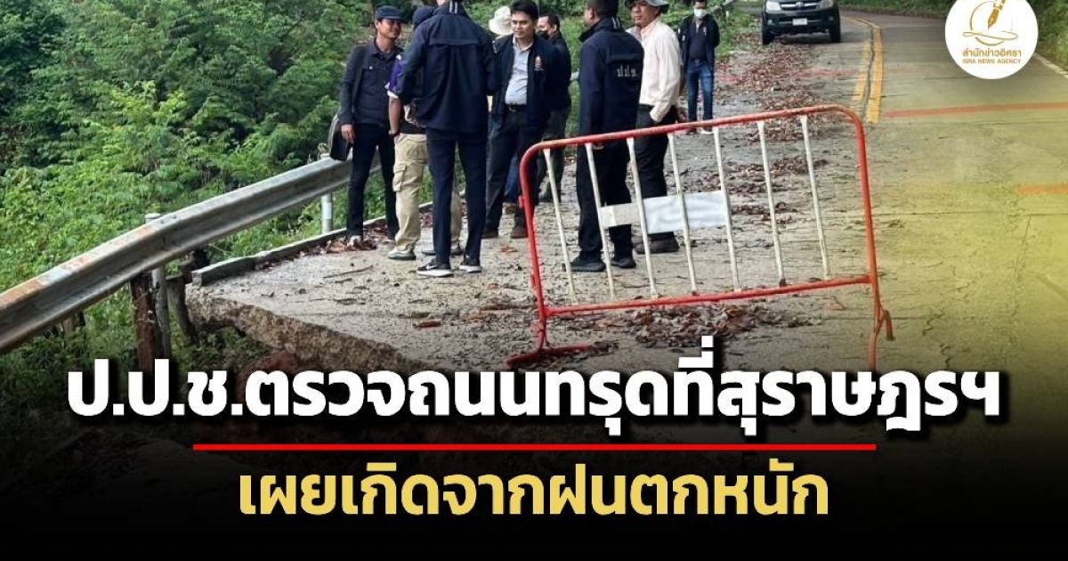 ป.ป.ช.ลงตรวจพื้นที่ถนนทรุดใน จ.สุราษฎร์ธานี หลังได้รับแจ้งก่อสร้างเสร็จไม่นานก็พัง เจ้าหน้าที่อ้างเกิดจากฝนตกหนักทำให้ทรุดถึง 2 รอบ แนะอยู่ในช่วงประกันต้องแจ้งรับเหมามาแก้ไข