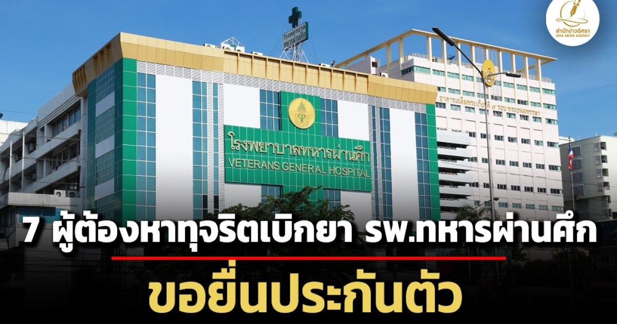 7 ผู้ต้องหาคดีทุจริตเบิกจ่ายยา รพ.ทหารผ่านศึกย่านขอประกันตัวแล้ว วงเงินประกันตั้งแต่ 2.5 แสน ถึง 4 แสนบาท ส่วนอีกรายยังอยู่ระหว่างหาเงินประกันตัว