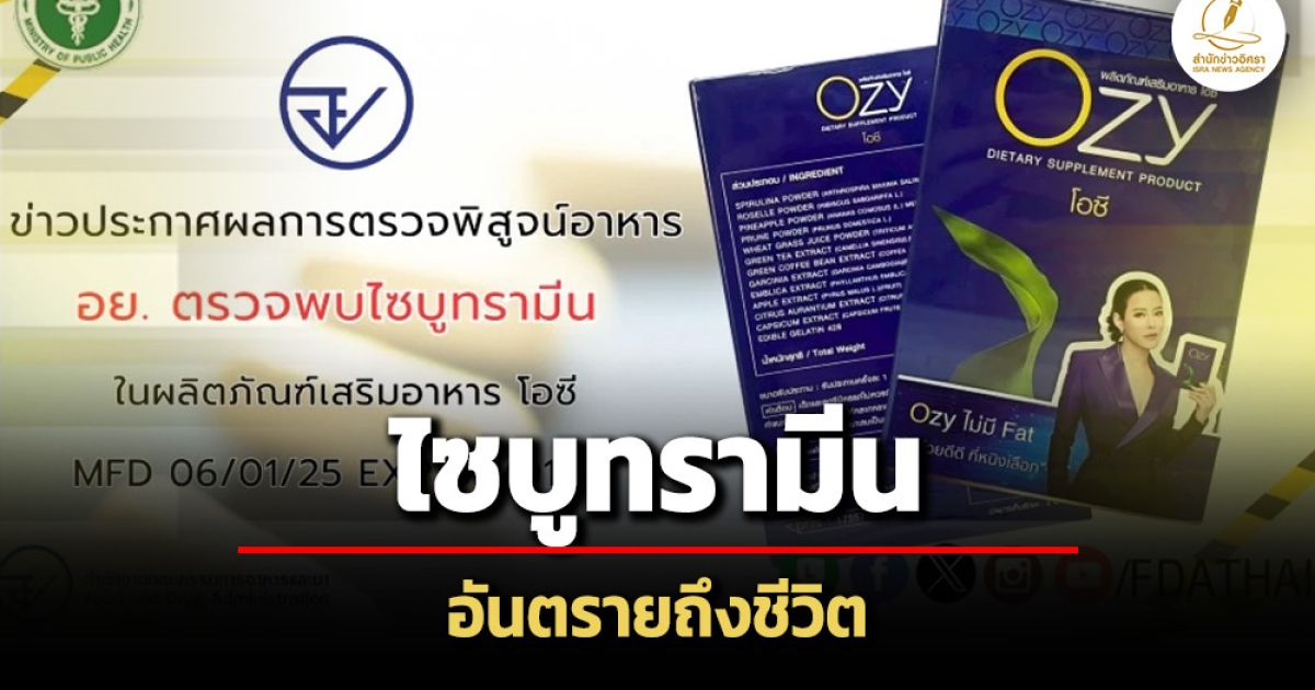 สำนักข่าวอิศรา (www.isranews.org) รายงานว่า เมื่อวันที่ 21 ต.ค. 2568 สำนักงานคณะกรรมการอาหารและยาออกมาโพสต์ข้อความพบ "ไซบูทรามีน" ในผลิตภัณฑ์เสริมอาหารลดน้ำหนัก 'โอซี' ชี้อันตรายถึงชีวิต ทั้งนี้พบว่ามีดาราดังอย่าง "หนิง ปณิตา" เป็นพรีเซ็นเตอร์ด้วย โดยทางเพจได้ระบุข้อความว่า