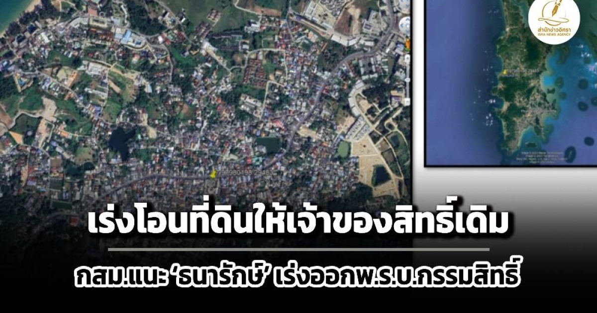 กสม.แนะ ‘ธนารักษ์-ธนารักษ์ภูเก็ต’ เร่งโอนที่ดินบริเวณบ้านบางเทา ตำบลเชิงทะเล อำเภอถลาง จังหวัดภูเก็ตให้ประชาชนผู้ถือสิทธิเดิมหรือทายาท 329 ราย หลังรอมายาวนานกว่า 39 ปี จากกรณีที่รัฐเคยเอาไปทำเหมืองแร่เมื่อปี 2463 พร้อมให้เร่งผลักดันเสนอร่างพระราชบัญญัติโอนกรรมสิทธิ์ที่ราชพัสดุที่เป็นสาธารณสมบัติของแผ่นดิน