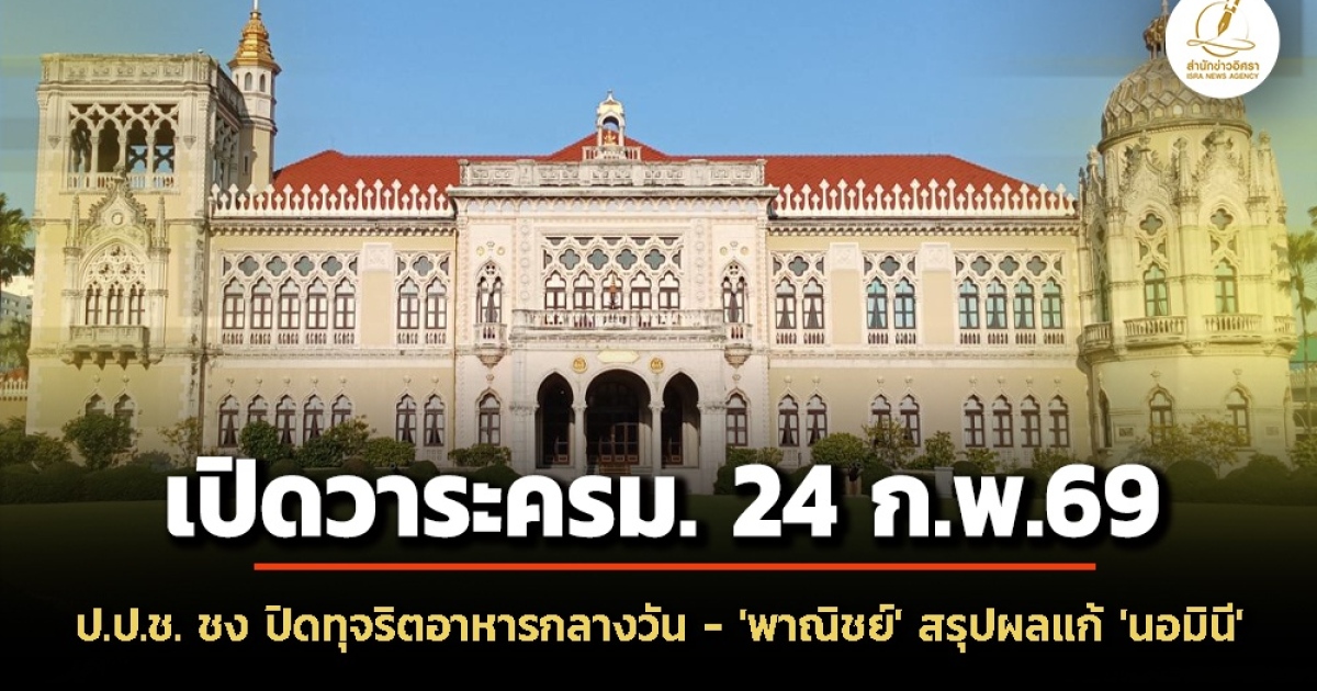 สำนักข่าวอิศรา (www.isranews.org) รายงานว่า วันที่ 24 กุมภาพันธ์ 2569 ที่ทำเนียบรัฐบาล มีการประชุม ครม. ที่มีนายอนุทิน เป็นประธานการประชุม ยังมีวาระสำคัญและเป็นที่น่าสนใจดังต่อไปนี้